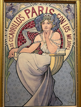 チェコ・プラハを訪問した際に、アール・ヌーボーを代表する画家、アルフォンス・ミュシャの美術館を再訪した。前回の訪問時にはなかった煙草会社依頼の珍しい広告ポスターが2点展示されていたので、愛煙家の皆様にご紹介したい。