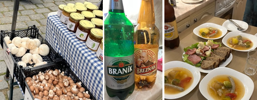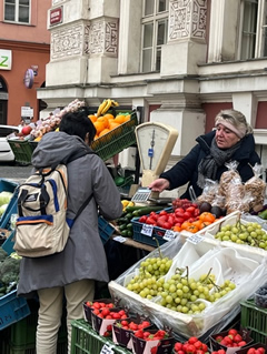チェコの物価は日本と同じくらいだから、高くない。外食はランチ程度にして、朝夕は自炊とする。朝はチーズ、卵、ハム、黒パン、ヨーグルト、エスプレッソ。夕食は腕の振るいどころで、新鮮な野菜と果物は、宿の近所にある教会前庭に、朝から夕方まで夫婦で露店を出している八百屋さんに通う。リンゴ、木イチゴ、ブドウが美味い。