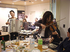 そして本日のメインイベント、プロ・アコーディオン演奏者、たつかわようこさんと、日本人では唯一だろうか、ハンガリーと日本を行き来しながら演奏活動を続けているジプシーバイオリニスト・古舘由佳子さんの登場。