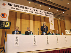 大会の司会はいつも私にライターや葉巻を気前よくプレゼントしてくれる、わが日本パイプスモーカーズクラブ(JPSC)仲間の大森さん、審判長はといえば、こちらもJPSC世話人、梶浦さん。