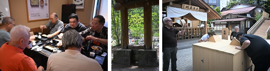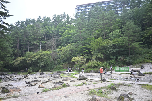 翌朝、ゆっくり朝食を食べて、湯畑近くの宿に移動。土産物屋や食堂などを見ているうちに、お昼近くになり、行列ができるちょっと有名な蕎麦屋で早めに皆で昼食。その後は思い思いに温泉に行く仲間もいれば、繁華街をぶらつくなど自由行動。西の河原公園にある喫煙自由の休憩小屋にいつしか皆が集まった。紫煙を楽しみながらまたまた歓談。話が途切れることがない。