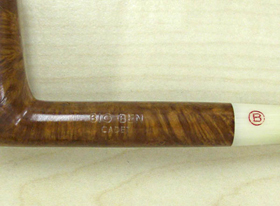 シャンクの刻印は”BIGBEN"に"CADET”とシェイプ番号の”1914"。吸い口には5ミリ大の丸にBが空押し刻印(刻印で色が入っていない状態)の後、赤色のラッカーを入れてある。