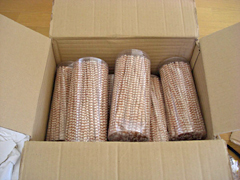 確かに、注文どおりモールが200本入っている透明な円筒がぎっしり詰まっていた。包装紙もなくむき出しで、その様は「なんかトウモロコシみたいだなあ」というのが正直な感想だ。