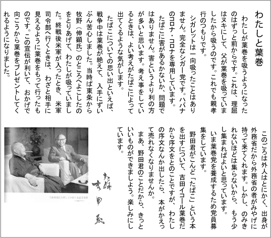 天下りであるが、たばこの著作をものにするのだから、これだけでも偉い。