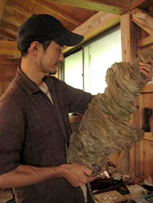 その都度湧いてきたイメージを取り入れつつ、小刀で少しずつシェイプしていきます。