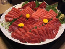 青森特産のヒバ油やヒバ加工品の製造工場などを見学して、夜は当然、町営の温泉宿泊施設で大間のマグロの刺身に舌鼓を打ちながらの温泉泊宴会。大間の一本釣りマグロは最高級品とあって水揚げすると東京・築地に直送されることが多く、地元にはあまり残らないとのことでしたが、知人がわざわざ差し入れてくれた大トロ、中トロは、油がしつこくなく、まさに絶品。地元の方は大トロの切り身でワサビを巻いて食べるそうで、試してみましたが、乙な味でした。
