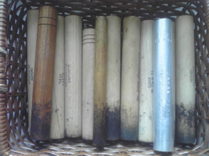 コンテスト使用タンパー(細身の物は1976年世界大会)およびタンパー寸法原器
